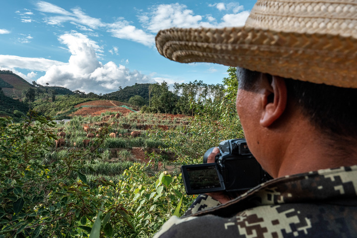 2018年,他成了專職亞洲象監測員,將一輛舊面包車改裝成流動工作站,無人機、干糧、卷尺、記錄本塞滿車廂。追蹤象群、發布預警、核查農損,是他每天的任務。野象足跡延伸到哪兒,車輪就駛向哪兒。
