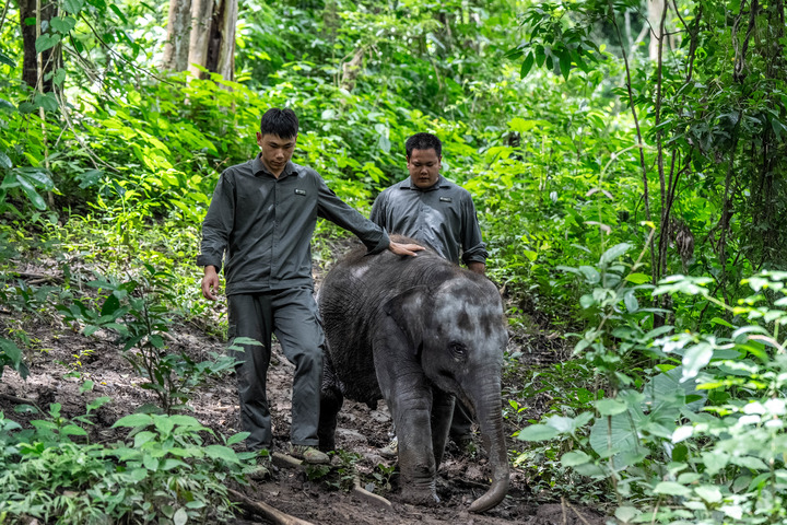 頂著30多攝氏度的高溫,終日和雨林里的螞蟥、蚊蟲為伴,“象爸爸”們日復一日地帶著收容的大象,到森林里進行野化訓練,只為有朝一日能幫助它們最終重返自然,這是所有“象爸爸”們的心愿。