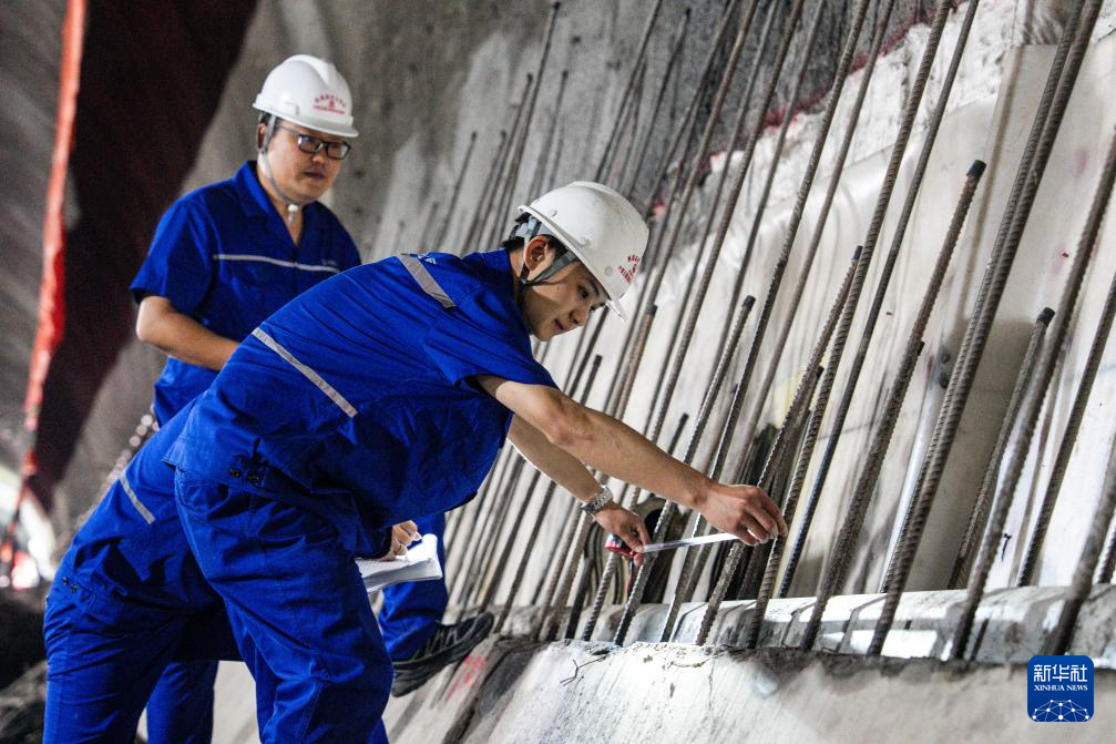 8月19日,中鐵五局的建設者在渝昆高鐵炳輝隧道內作業。新華社記者 胡超 攝