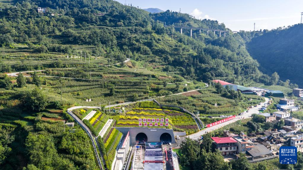 空中俯瞰渝昆高鐵炳輝隧道(8月19日攝,無人機照片)。新華社記者 胡超 攝