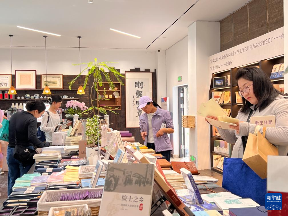 7月31日,參觀者在西南聯大茶館選購書籍。新華社記者 趙彩琳 攝