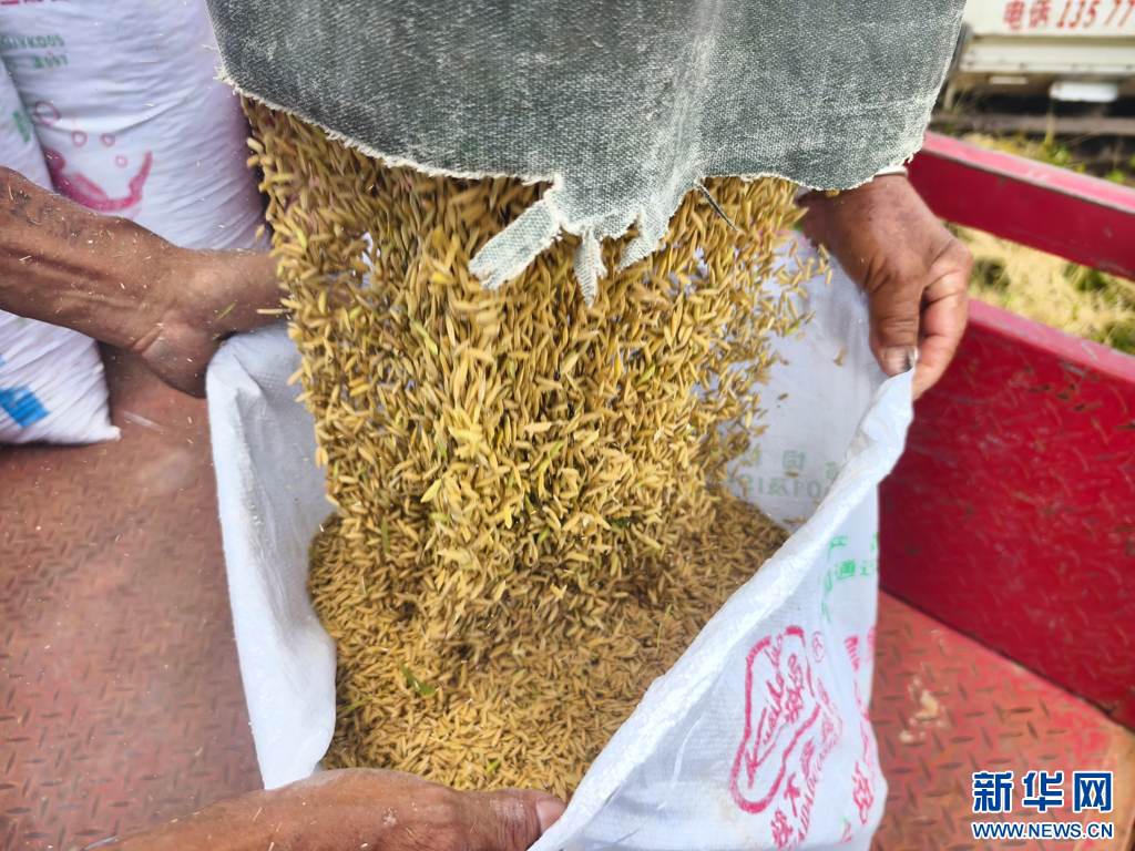 機械化收割水稻(8月13日攝)。新華網發(景谷縣融媒體中心供圖)