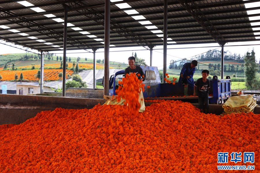 萬壽菊豐收(8月19日攝)。新華網發(伍明歡 攝)