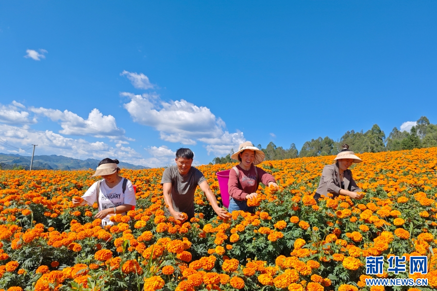 花開四季 “香”約云南|云南屏邊:萬壽菊開 花農采花忙