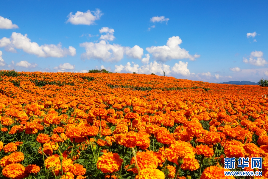 漫山遍野的萬壽菊(8月19日攝)。新華網發(李偉健 攝)