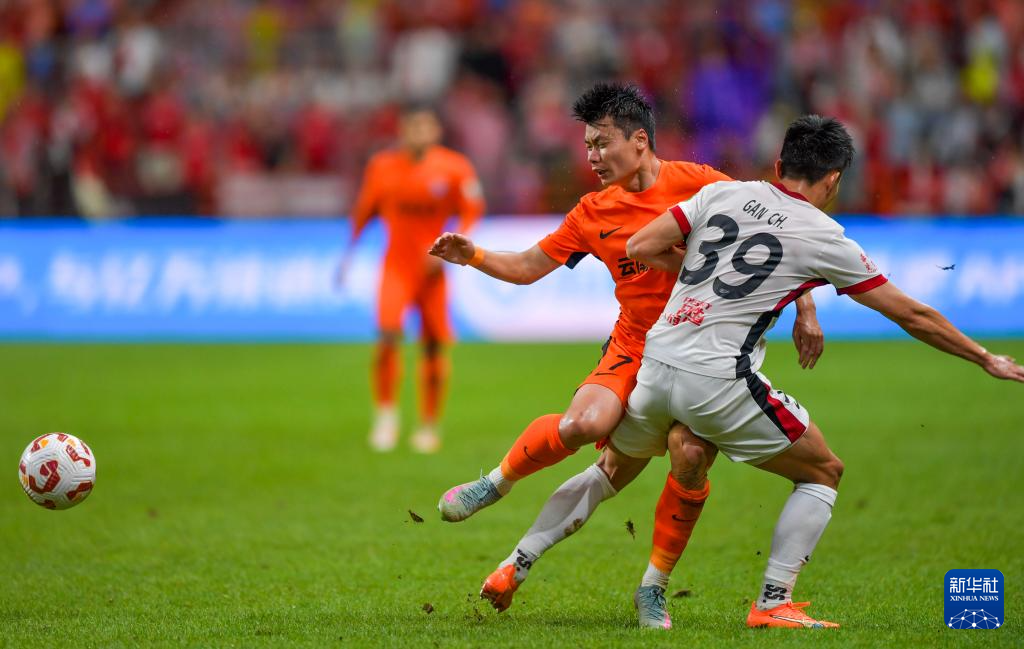8月23日,成都蓉城隊球員周定洋(中)在比賽中。新華社記者 陳欣波 攝
