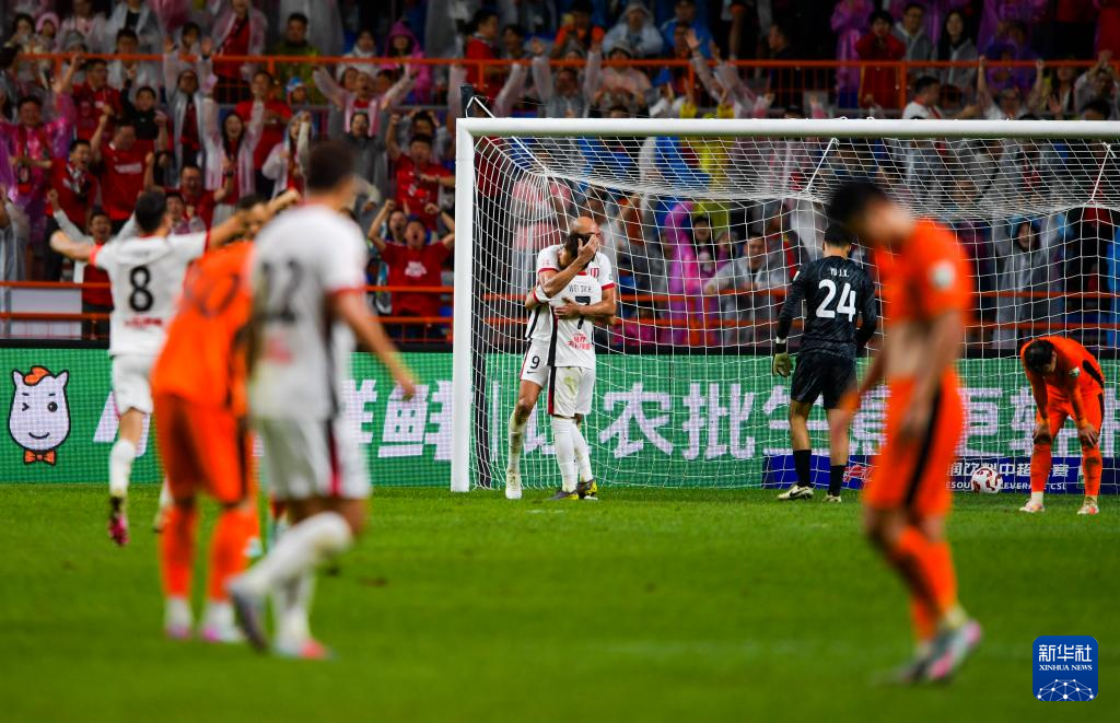 8月23日,成都蓉城隊球員在比賽中慶祝進球。新華社記者 陳欣波 攝