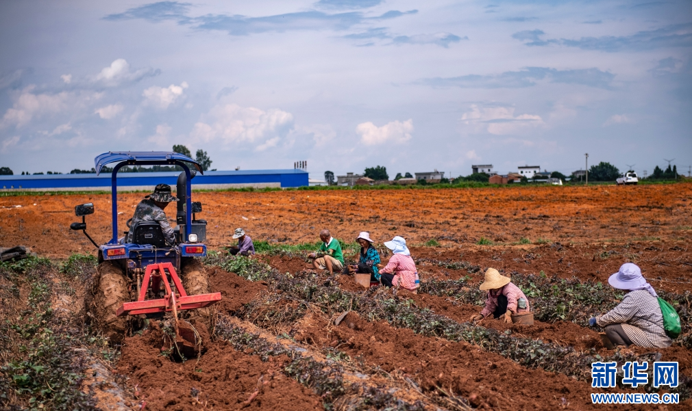在云南省硯山縣石碑寨村,村民忙著采收、分揀紅薯(8月17日攝)。新華網發(熊平祥 攝)