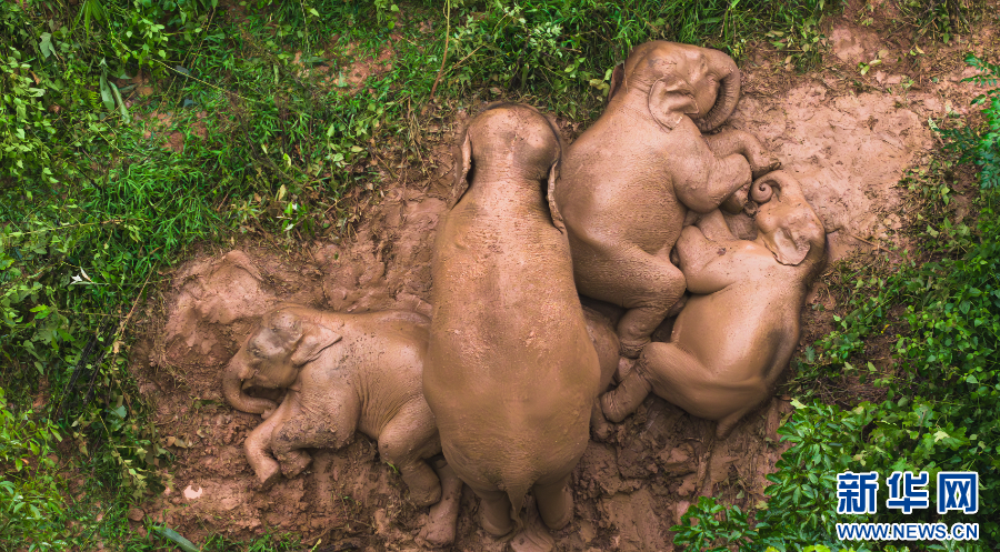 生活在江城縣的野生亞洲象群。新華網發(徐華陵 攝)