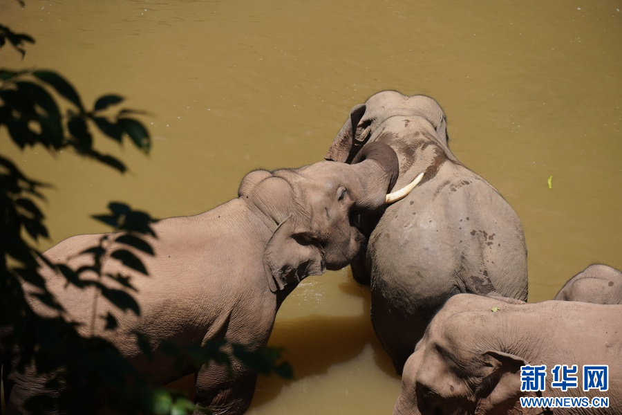 野象群正在玩耍(7月7日攝)。新華網發(徐華陵 攝)