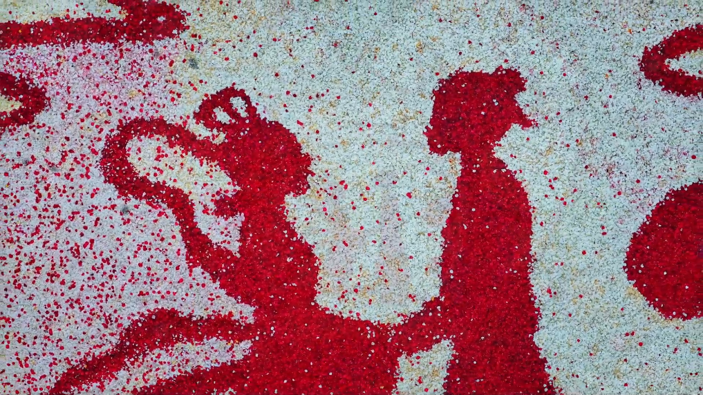 8月29日七夕佳節,云南省昆明市晉寧區昆陽城浪漫上演“花瓣雨”。近10噸玫瑰花瓣鋪就巨幅“云間鵲橋”圖景,無人機升空將花瓣灑向地面。