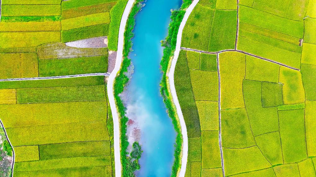 近日,云南省文山壯族苗族自治州廣南縣八寶鎮迎來豐收季。45000畝水稻漸次成熟,廣袤田野化作多姿多彩的色塊。谷浪翻涌,清香四溢,清澈的河水映照著兩岸的綠樹與錯落的民居,一幅動人的豐收畫卷正徐徐展開。