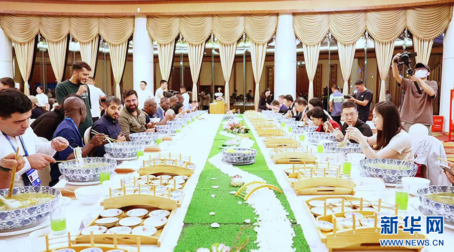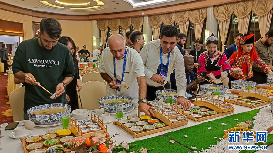 嘉賓品嘗過橋米線(9月7日攝)。新華網發(張漢超 攝)