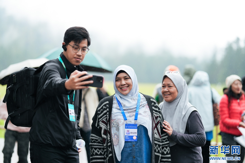 嘉賓在玉龍雪山景區云杉坪自拍(9月8日攝)。新華網發(徐俊 攝)