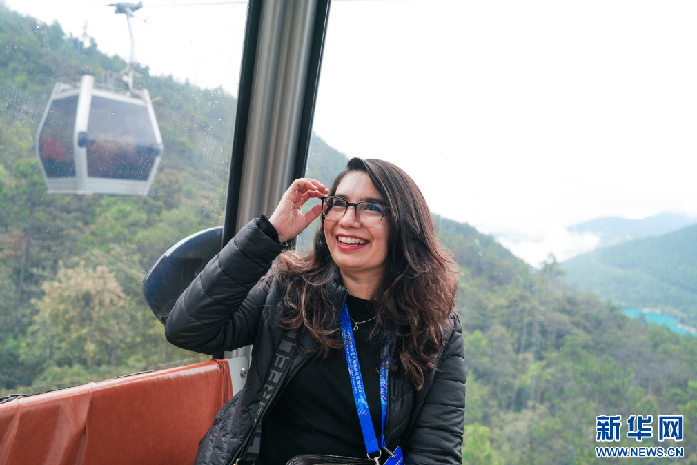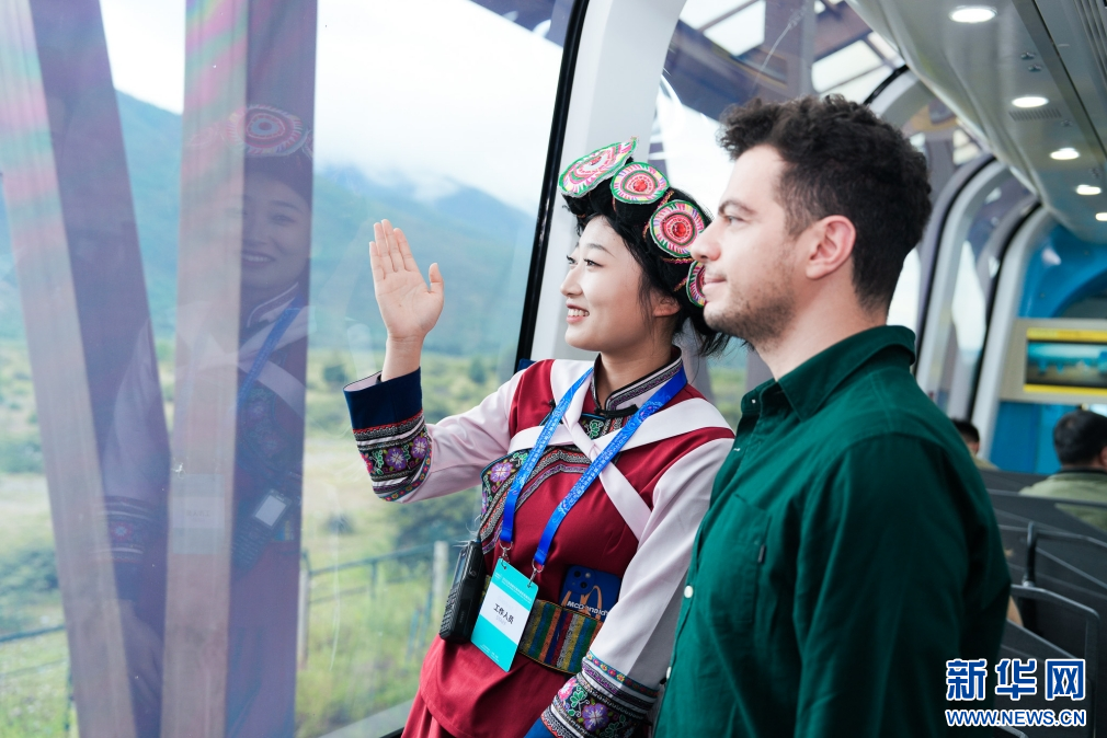 外賓乘坐玉龍雪山索道(9月8日攝)。新華網發(徐俊 攝)