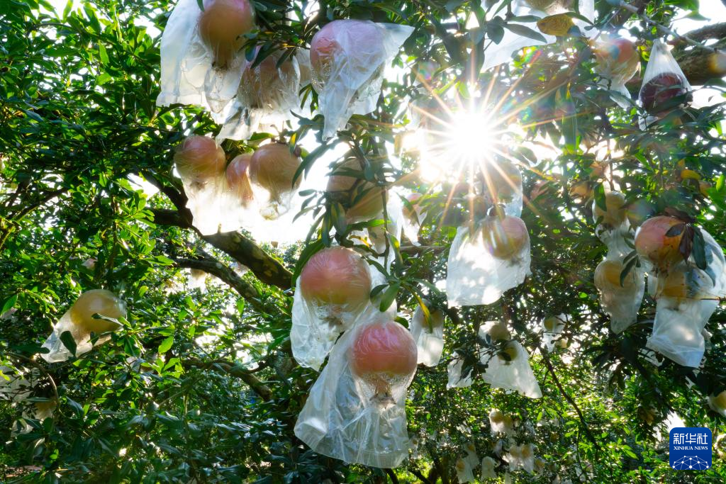 這是9月8日在云南省紅河州蒙自市百年古樹石榴園內拍攝的石榴。新華社記者高詠薇 攝