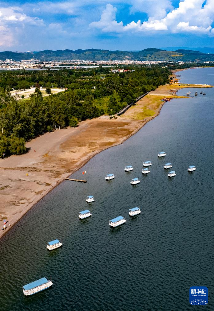 這是9月8日拍攝的撫仙湖景色(無人機照片)。新華社記者 陳欣波 攝