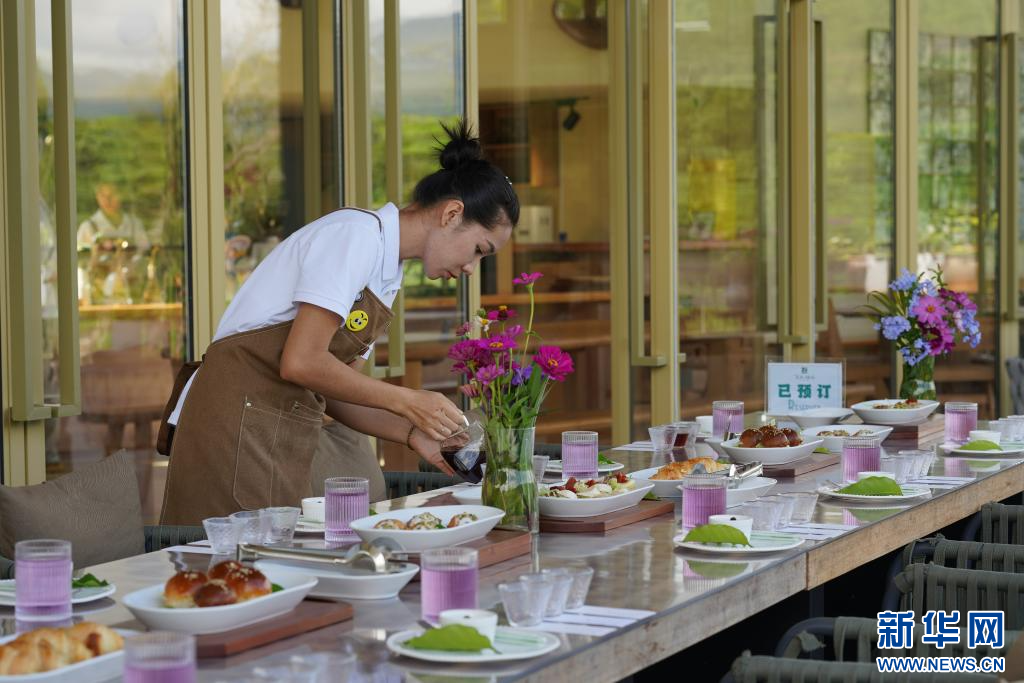 工作人員在白沙坡村民小組“美麗星村·有風咖谷”咖啡體驗中心為游客準備咖啡和特色餐點(9月17日攝)。新華網發(高詠薇 攝)