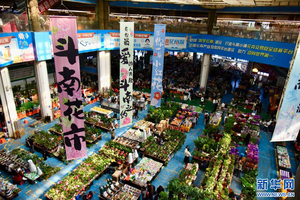 圖為3月5日在云南省昆明市呈貢區拍攝的斗南花卉市場內部。 新華社記者 王賢思 攝
