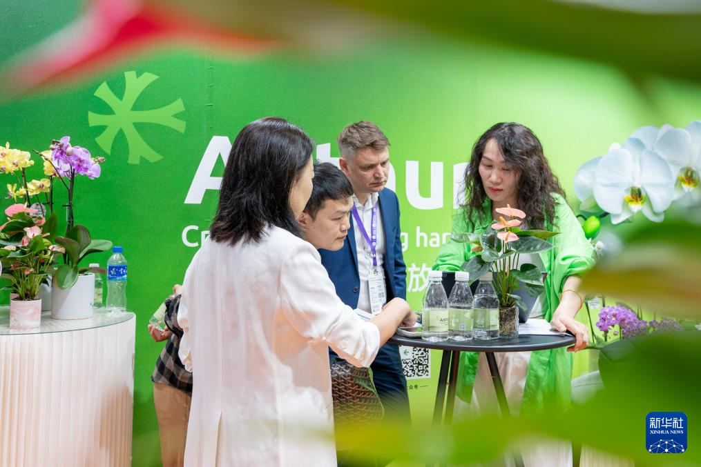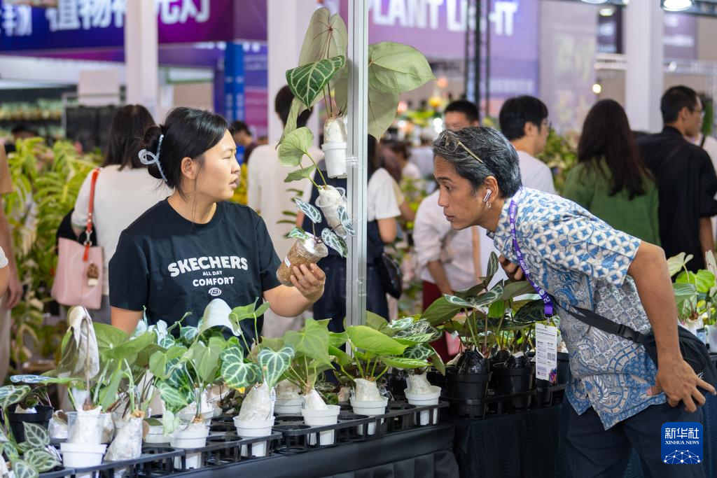 9月19日,參展商在第二十三屆中國昆明國際花卉展洽談業務。新華社記者 高詠薇 攝