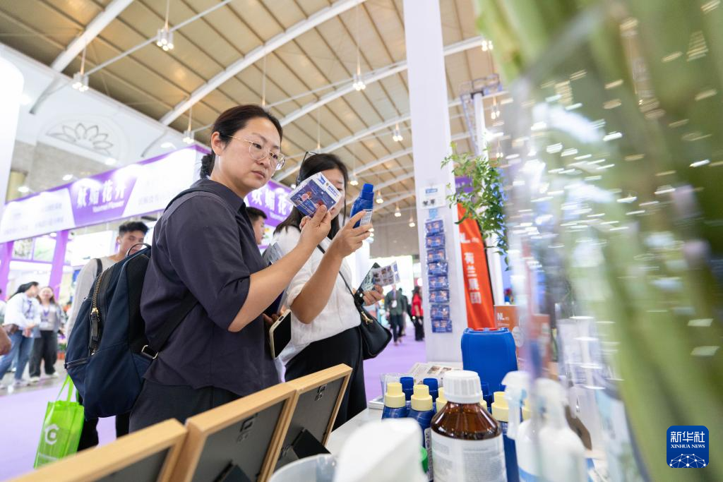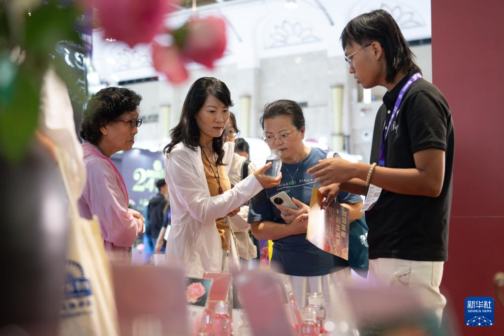 9月19日,觀眾在第二十三屆中國昆明國際花卉展了解鮮花純露。新華社記者 高詠薇 攝