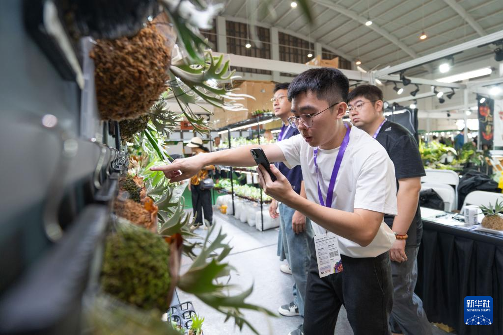 9月19日,觀眾在第二十三屆中國昆明國際花卉展了解花卉產品。新華社記者 高詠薇 攝