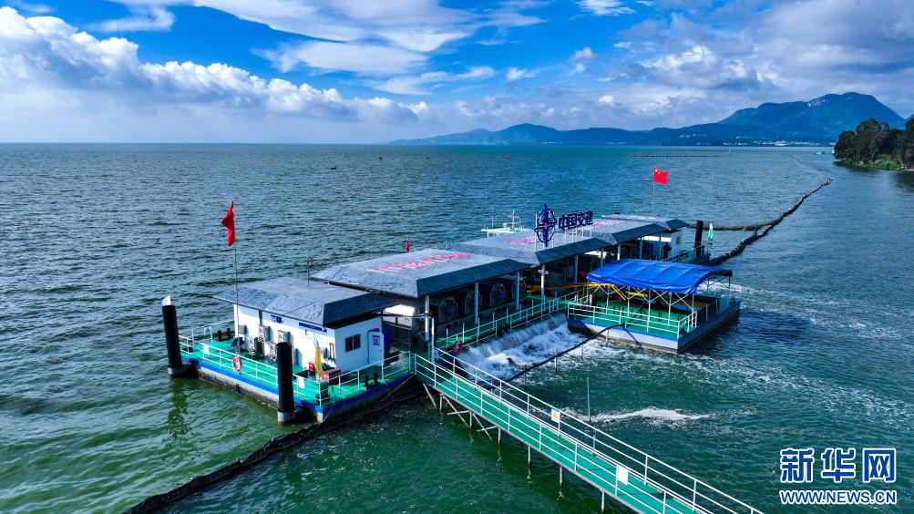 新華網昆明9月21日電(記者 胡了然)初秋的滇池湖面微風輕拂,波光粼粼,一座巨型藍色平臺屹立湖面,這是由中國交通建設集團為滇池量身定制的“藻水共治”水上一體化平臺。登上防滑甲板,核心處理設備的運轉場景便映入眼簾——機械運轉轟鳴聲中,泛著淡綠色的富藻水通過專用管路被源源不斷吸入平臺艙體,對藍藻進行技術分離后,短短數分鐘,清澈透亮的尾水便從另一側出水口涌出,穩穩匯入滇池。