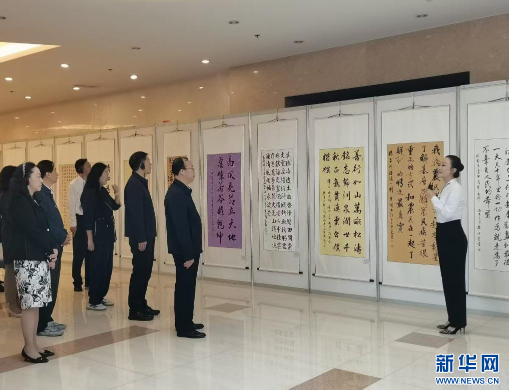 與會嘉賓參觀“不忘初心、奉獻一生的楷?!獥钌浦蕖敝黝}文藝作品展。新華社記者 李溪巖 攝