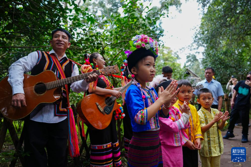 9月27日,演員在景邁山大平掌古茶園為游客表演。新華社記者 陳欣波 攝