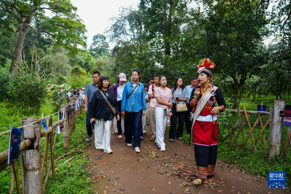 9月27日,游客在景邁山大平掌古茶園游覽。新華社記者 陳欣波 攝