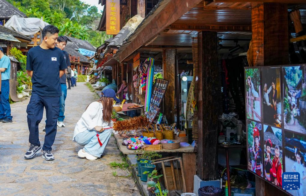 9月27日,游客在景邁山糯崗古寨游覽。新華社記者 陳欣波 攝