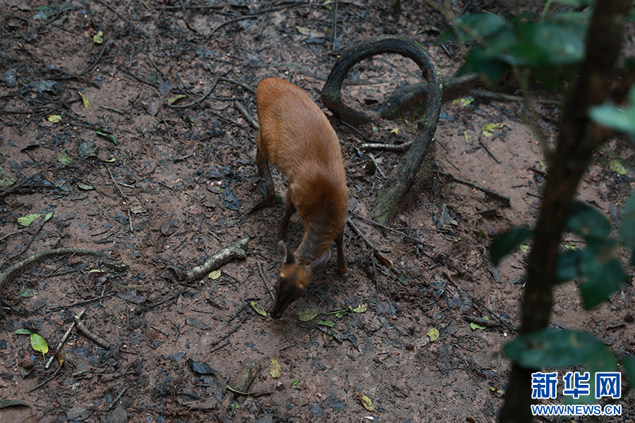 赤麂在野外采食(7月7日攝)。新華網發(徐華陵 攝)
