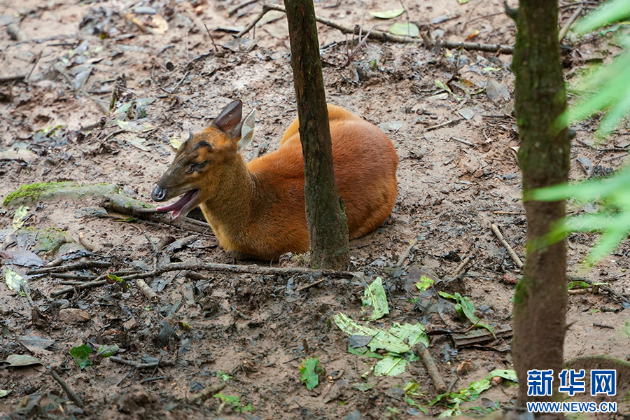 正在打哈欠的赤麂(7月7日攝)。新華網發