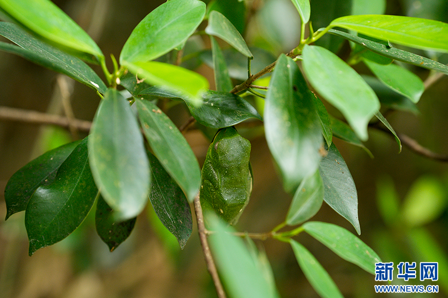 偽裝在樹葉間的黑蹼樹蛙(資料圖)。新華網發(張鵬 攝)
