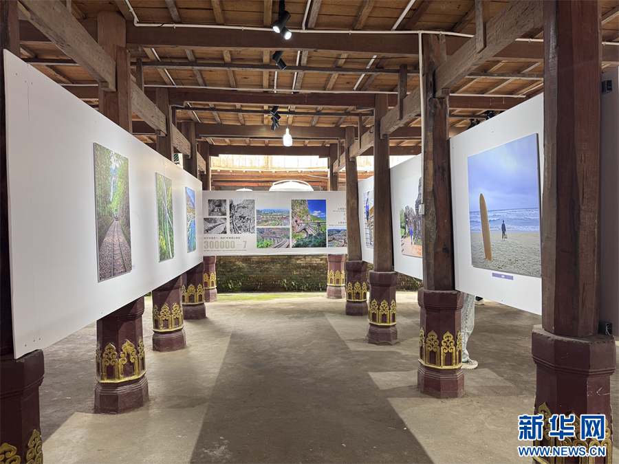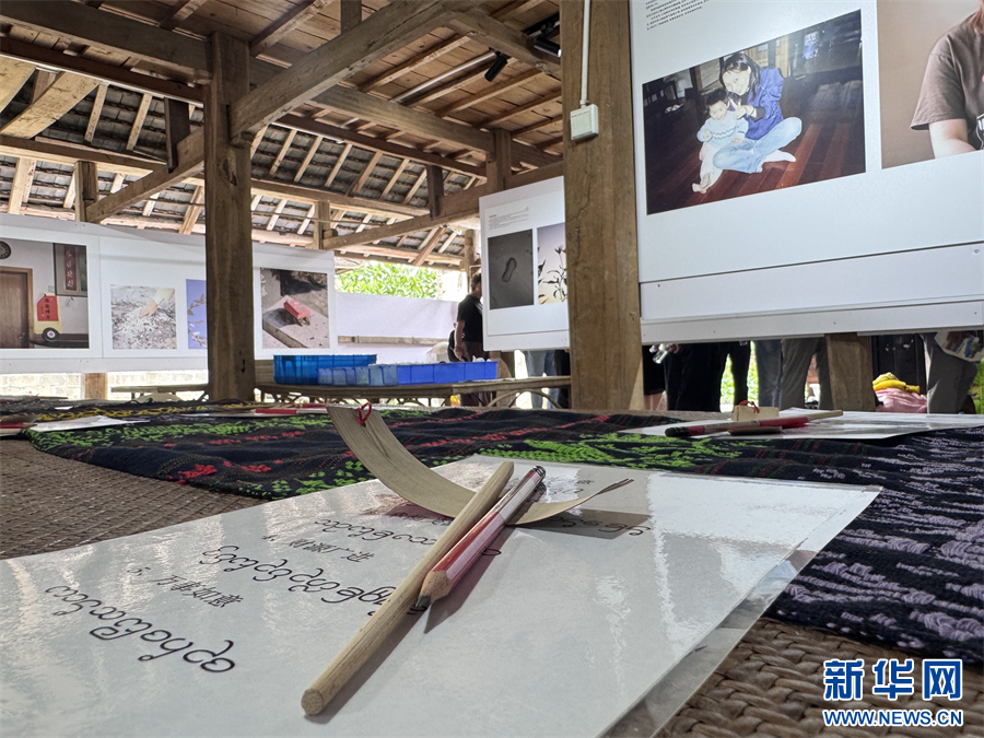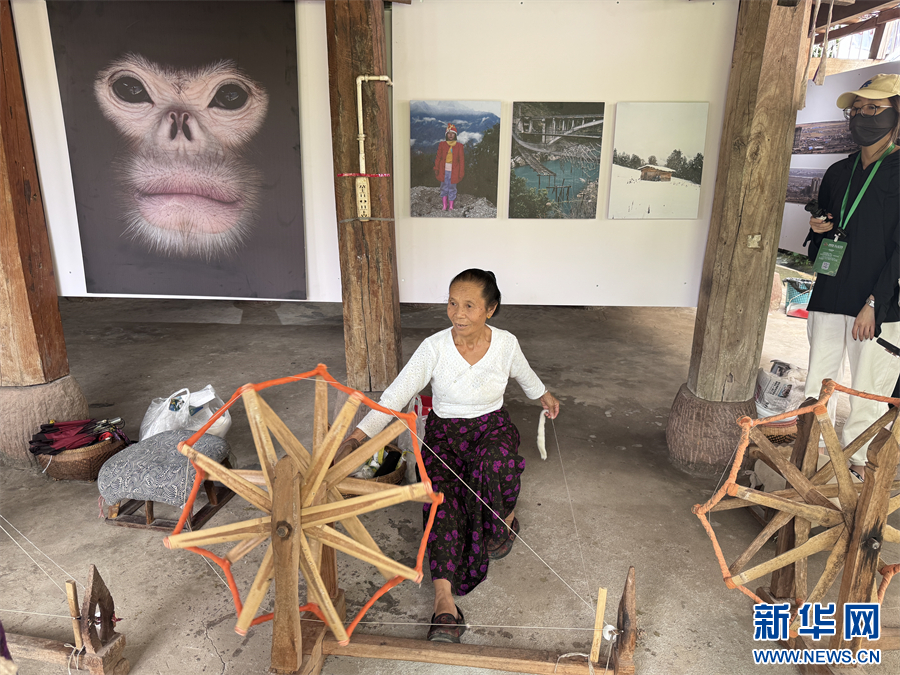 各類影像作品在傣族園的傣樓中展示(10月2日攝)。新華網發(柴靜 攝)