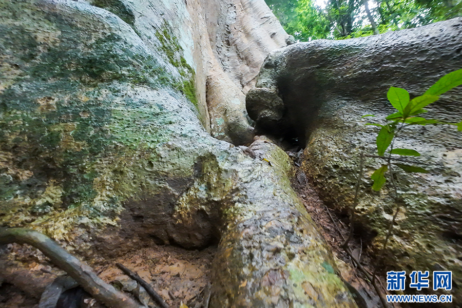 四數木樹干底部寬大的板根(7月2日攝)。新華網發(徐華陵 攝)