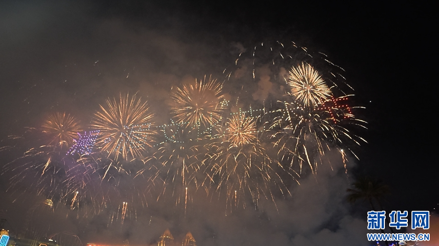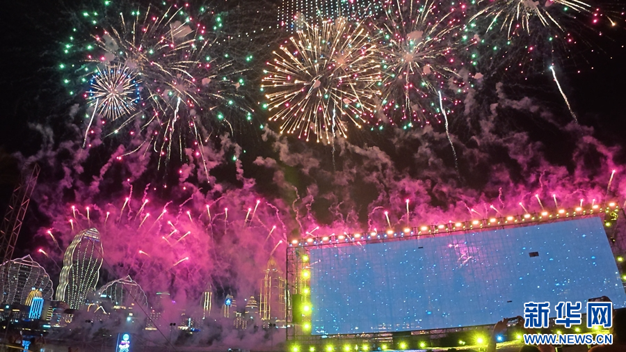 “瀾·湄嘉年華”現場綻放的璀璨煙花(10月3日攝)。新華網發(柴靜 攝)