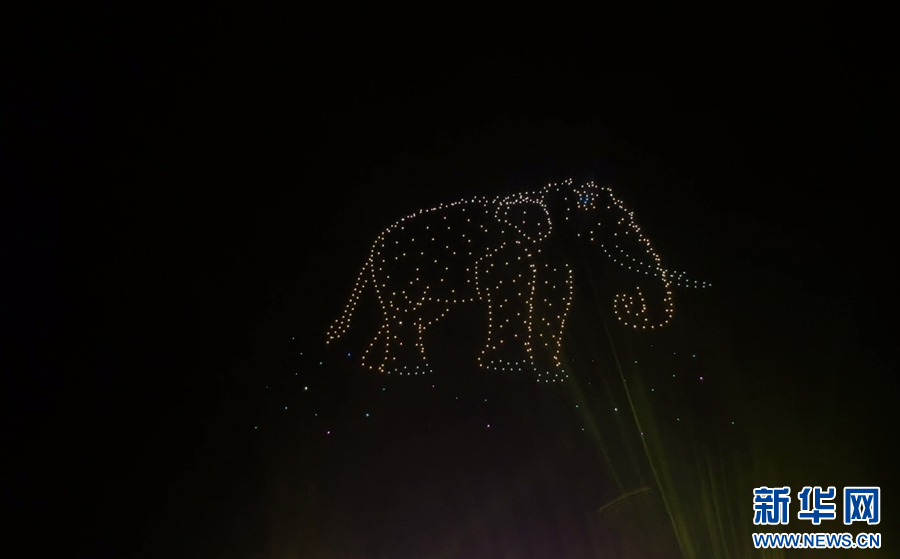 “瀾·湄嘉年華”現場的無人機表演(10月3日攝)。新華網發(柴靜 攝)pagebreak
