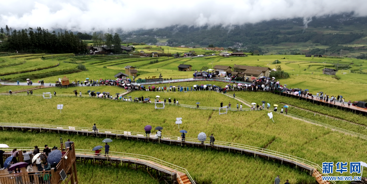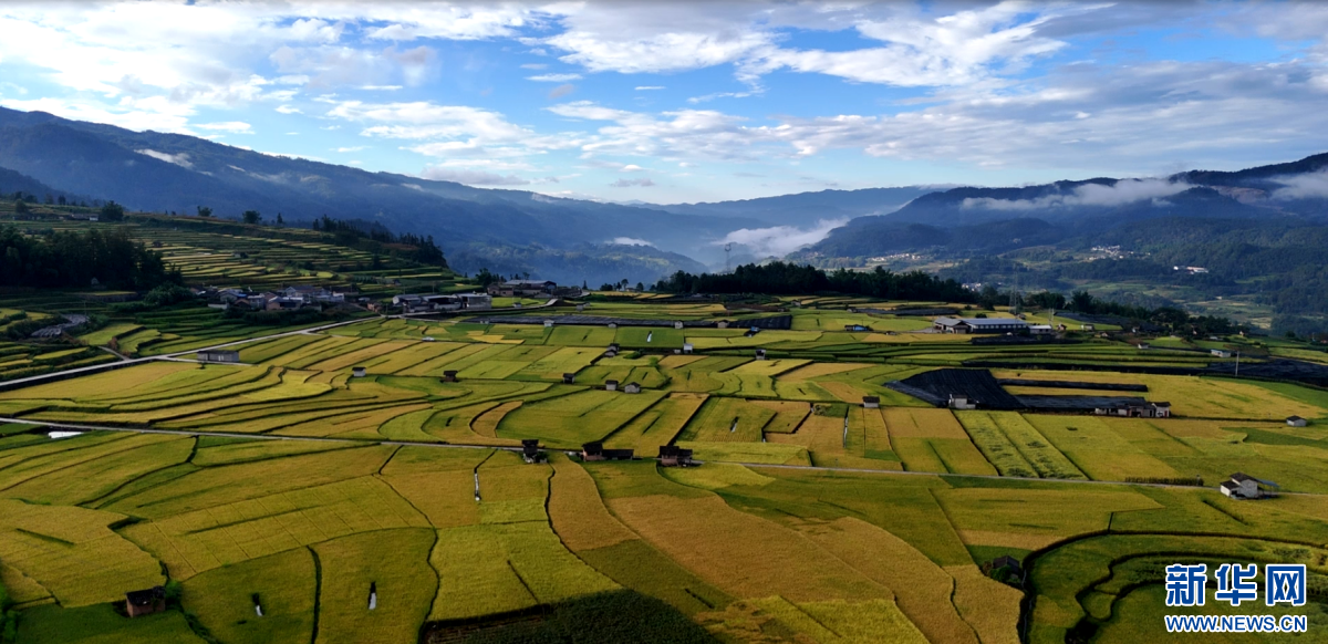 龍江鄉豐收的稻田(10月1日攝)。新華網發(龍陵縣融媒體中心 供圖)