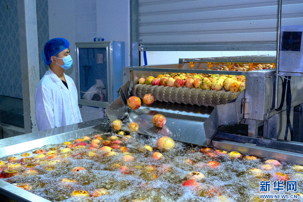 石榴飲品生產車間一角(10月3日攝)。新華網發(張洪科 攝)