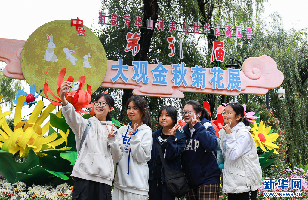 前來大觀公園觀賞菊花的游客(10月1日攝)。新華網發(鄭益 攝)