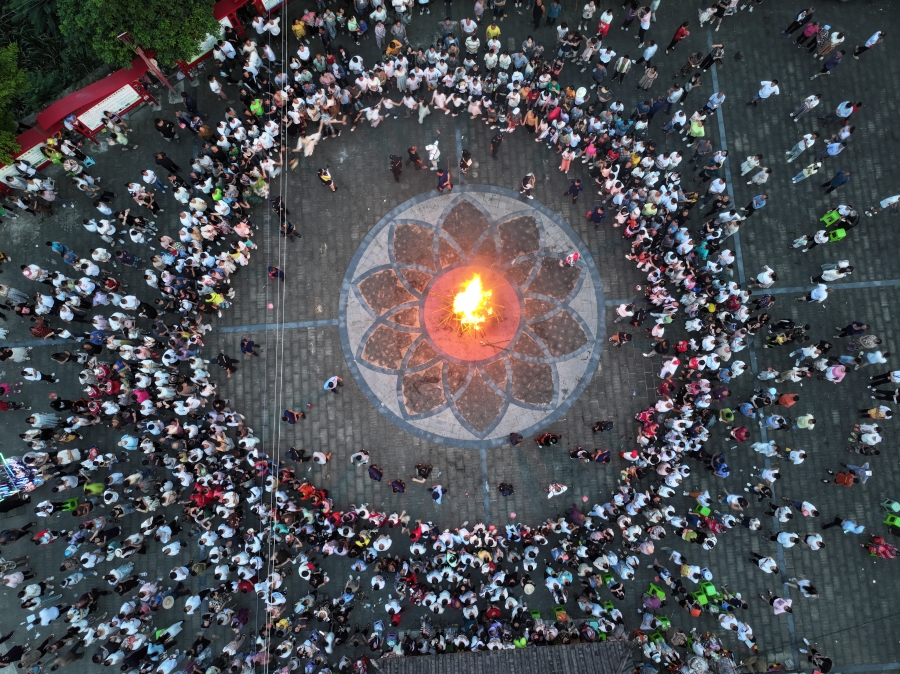 各族群眾圍著篝火載歌載舞(資料圖)。