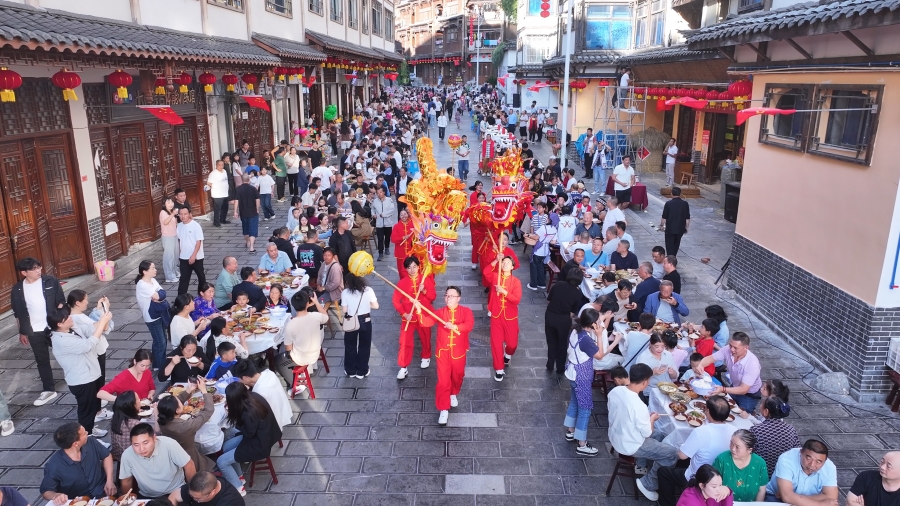 游客到威信縣參加長街宴活動(10月8日攝)。