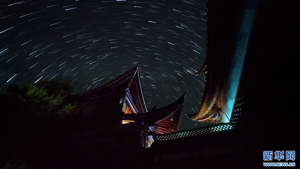 用延時攝影在云南騰沖新岐冒盔山拍攝到的星空美景(視頻截圖)。