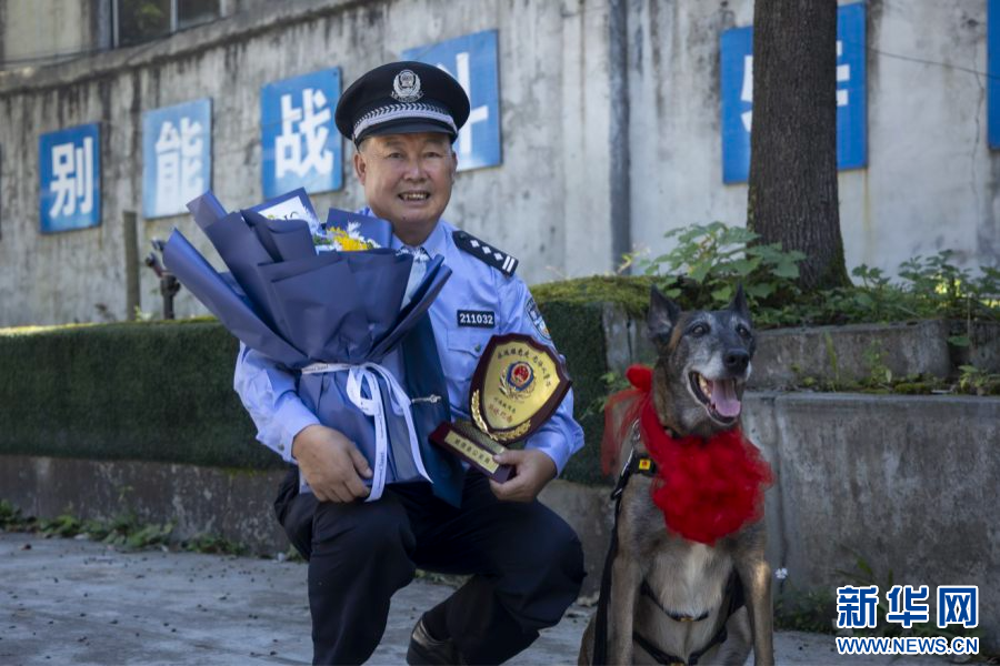 民警何德敏和警犬“無情”共同退休(視頻截圖)。新華網發(昭通市公安局供圖)