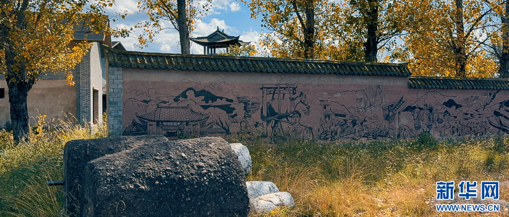 修建云南驛機場時的石碾和茶馬古道壁畫(10月28日攝)。新華網發(劉東 攝)