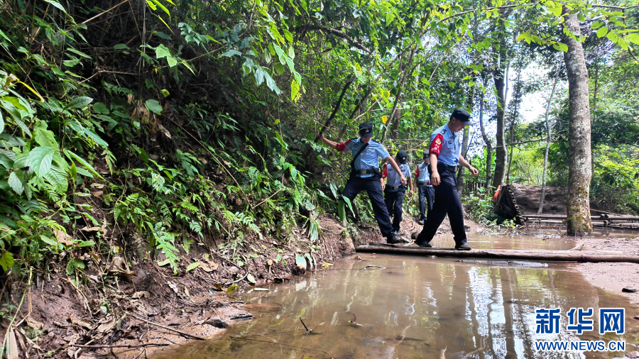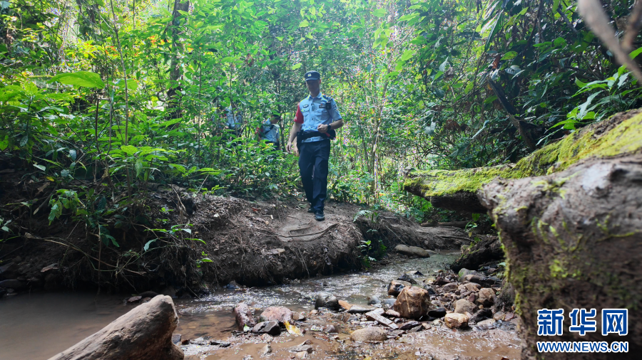 民警在雨林中徒步巡邏(10月21日攝)。新華網發(云南省公安廳新聞宣傳處供圖)