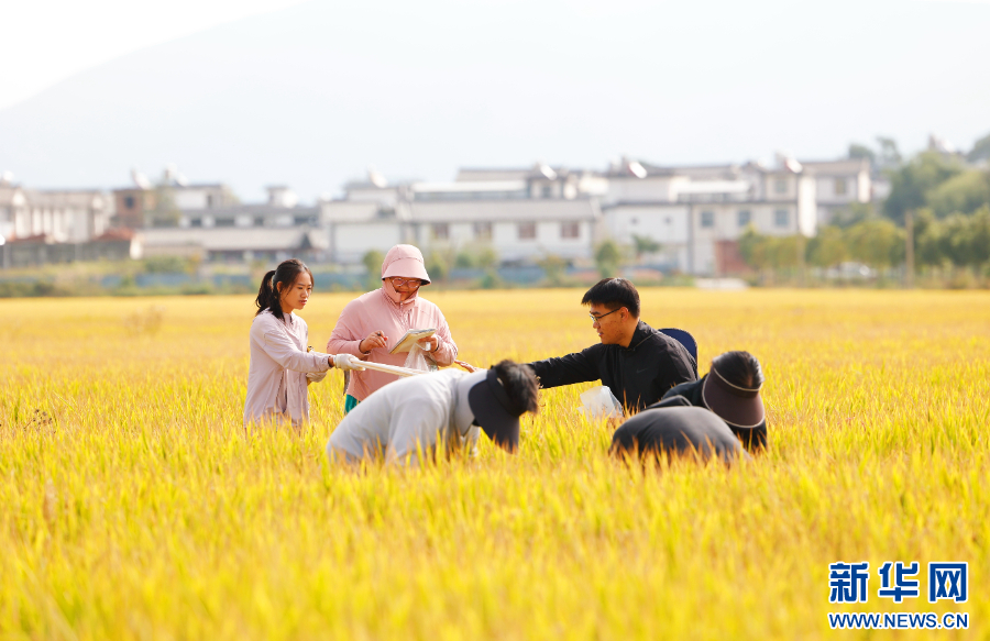 大理古生村科技小院的學生在稻田里測產(10月23日攝)。新華網 趙普凡 攝