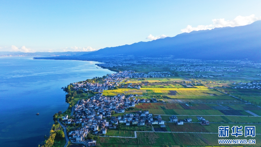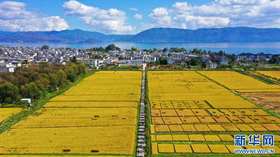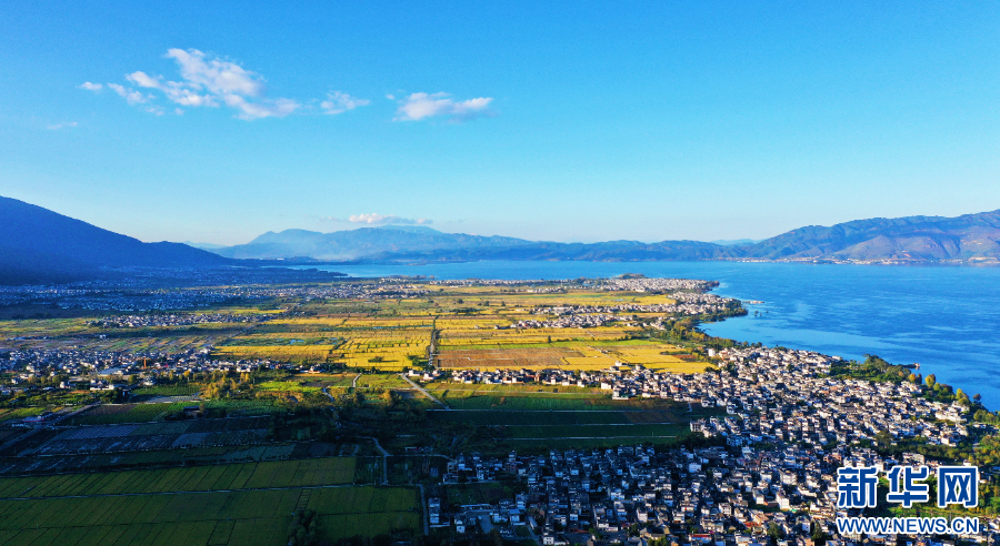 大理洱海、村莊、稻田相映成景(10月25日攝)。新華網 趙普凡 攝
