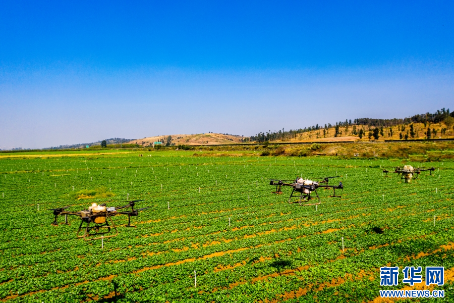 蔬菜基地正在進行無人機噴灑(資料圖)。新華網發(熊平祥 攝)